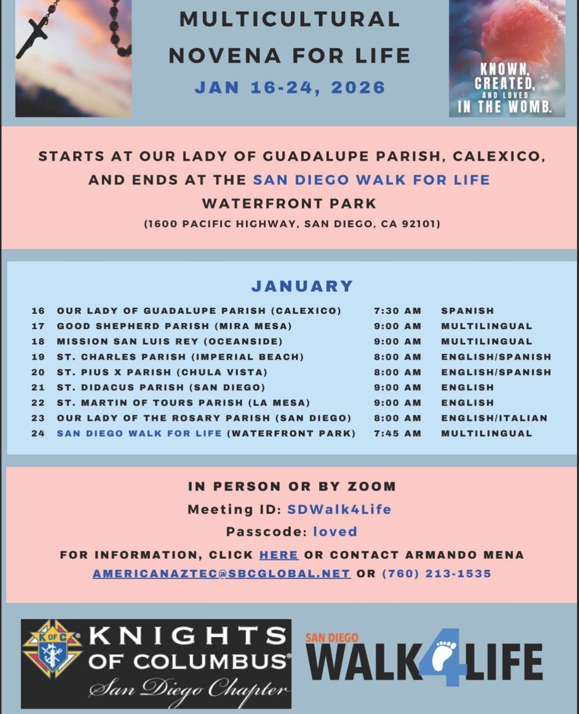 WALK FOR LIFE on January 24th: Nativity Parishioners and friends, meet at 10:45 AM at Waterfront Park at the Children's Activity Booth