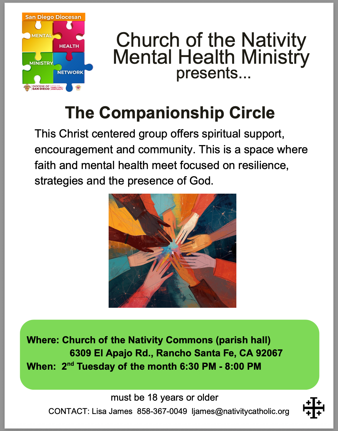 Parish Companionship Team: 858-367-0049 - Email: ljames@nativitycatholic.org