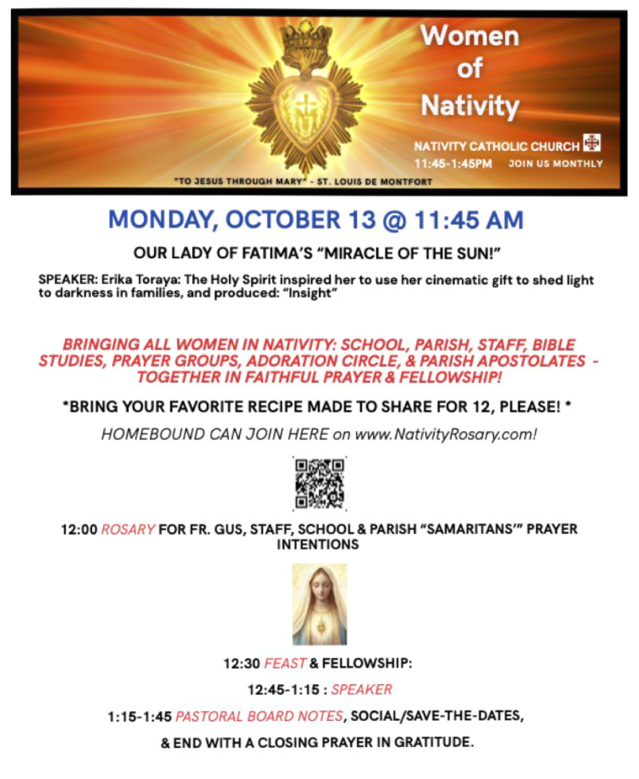 Would you like to subscribe to the Women of Nativity newsletter list? click here to subscribe.